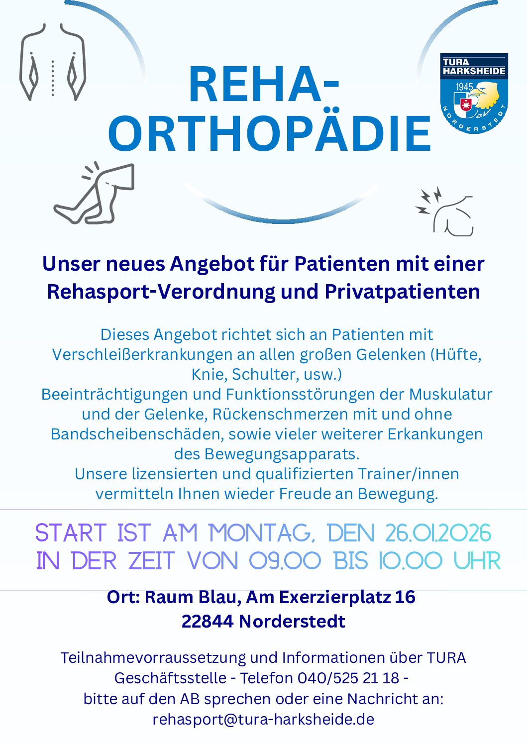 Sie erreichen uns auch per Mail unter info@tura-harksheide.de